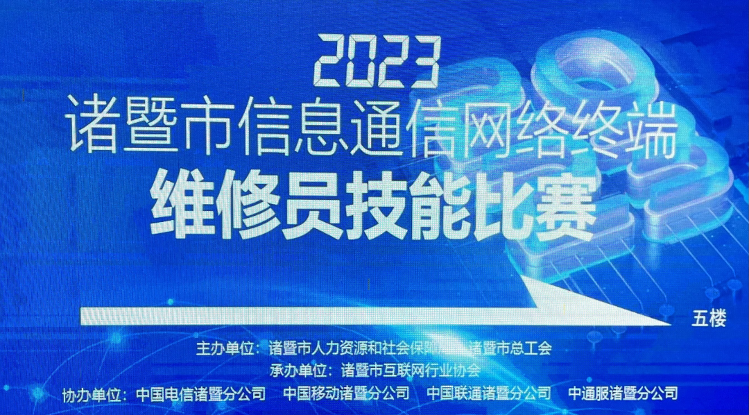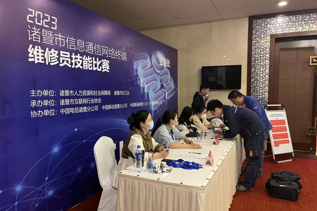 5月11日,2023年诸暨市职业技能竞赛—信息通信网络终端维修员技能比赛在诸暨祥生世纪酒店举行,竞赛由诸暨市人力资源和社会保障局、诸暨市总工会主办,诸暨市互联网行业协会承办,中国电信诸暨分公司、中国移动诸暨分公司、中国联通诸暨分公司、中通服诸暨分公司协办。来自诸暨市从事相关工种的113名选手参加。